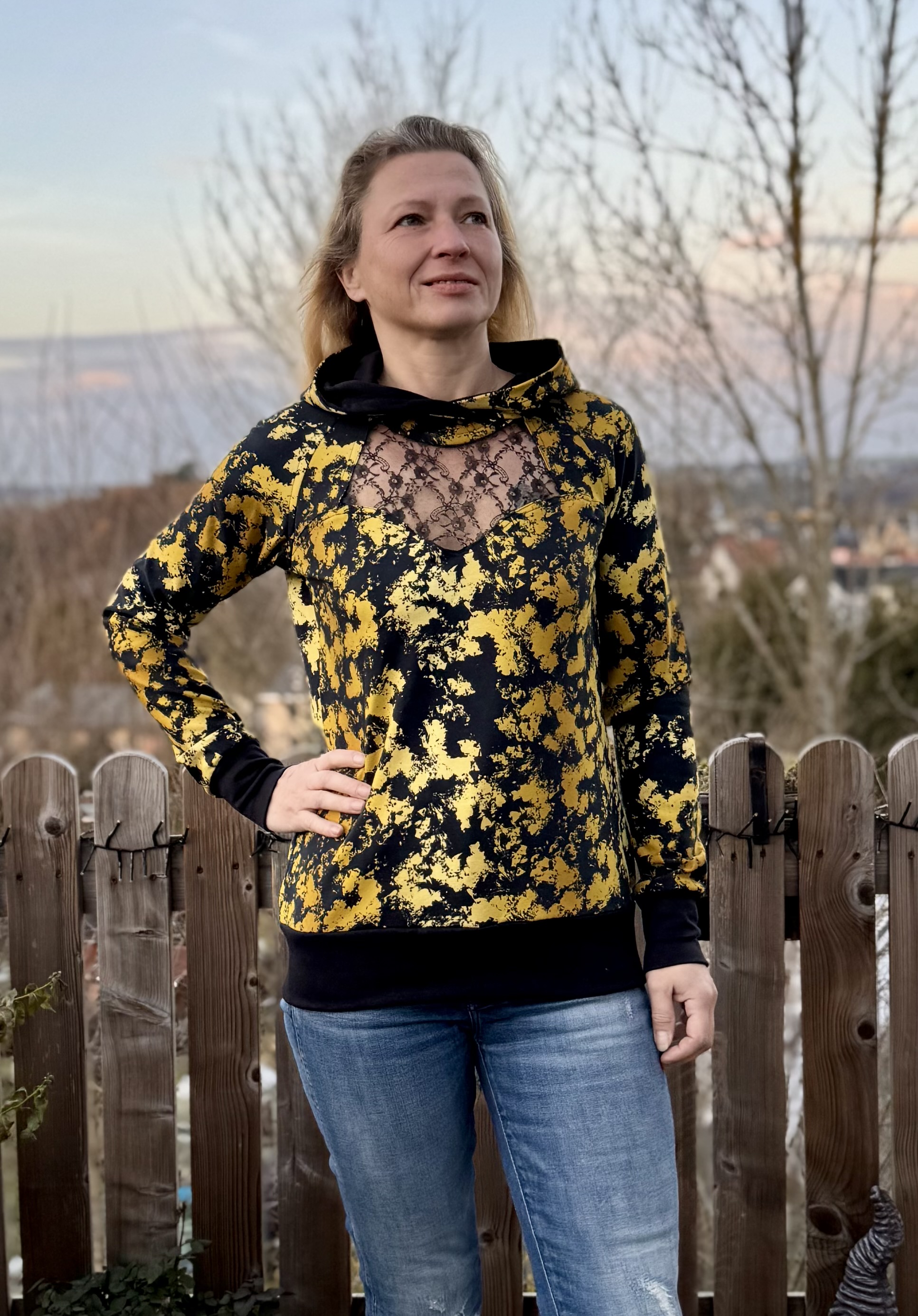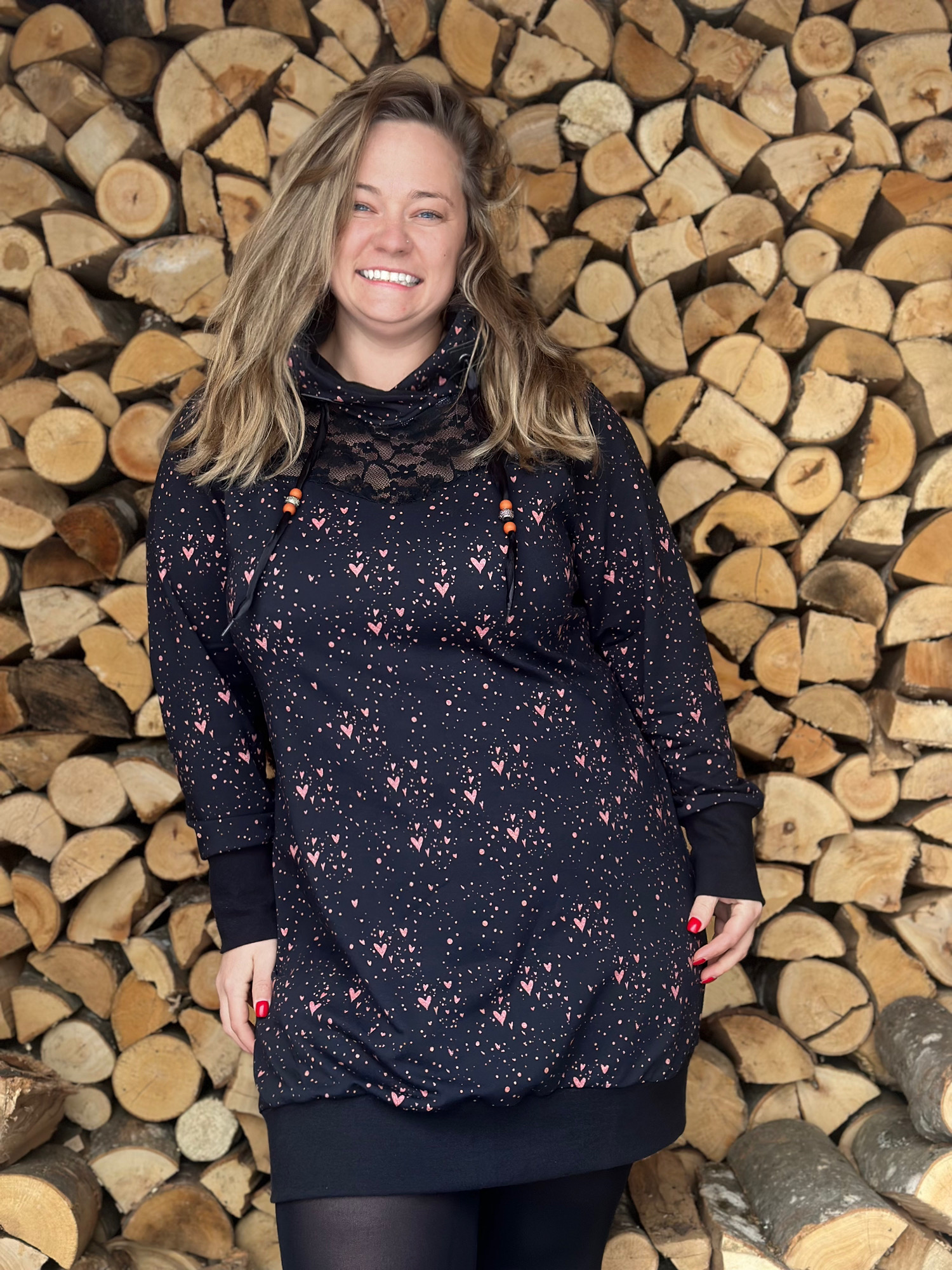 Heart MEE ist ein toller Raglan-Hoodie mit femininem Herzausschnitt. Mit seiner Passe und den 3 verschiedenen Längen bietet er richtig viel Abwechslung. In Croppedlänge trägt sich Heart MEE super über ein Kleidchen oder Du nähst ihn ganz leger und klassisch in Hüftlänge mit Bündchenabschluss. Auch die Longlänge kann sich sehen lassen und passt perfekt in den Herbst/Winter mit Leggins und Stiefeln. Deiner Fantasie sind mit diesem Schnitt keine Grenzen gesetzt und Du kannst Dich immer wieder aufs neue kreativ austoben.