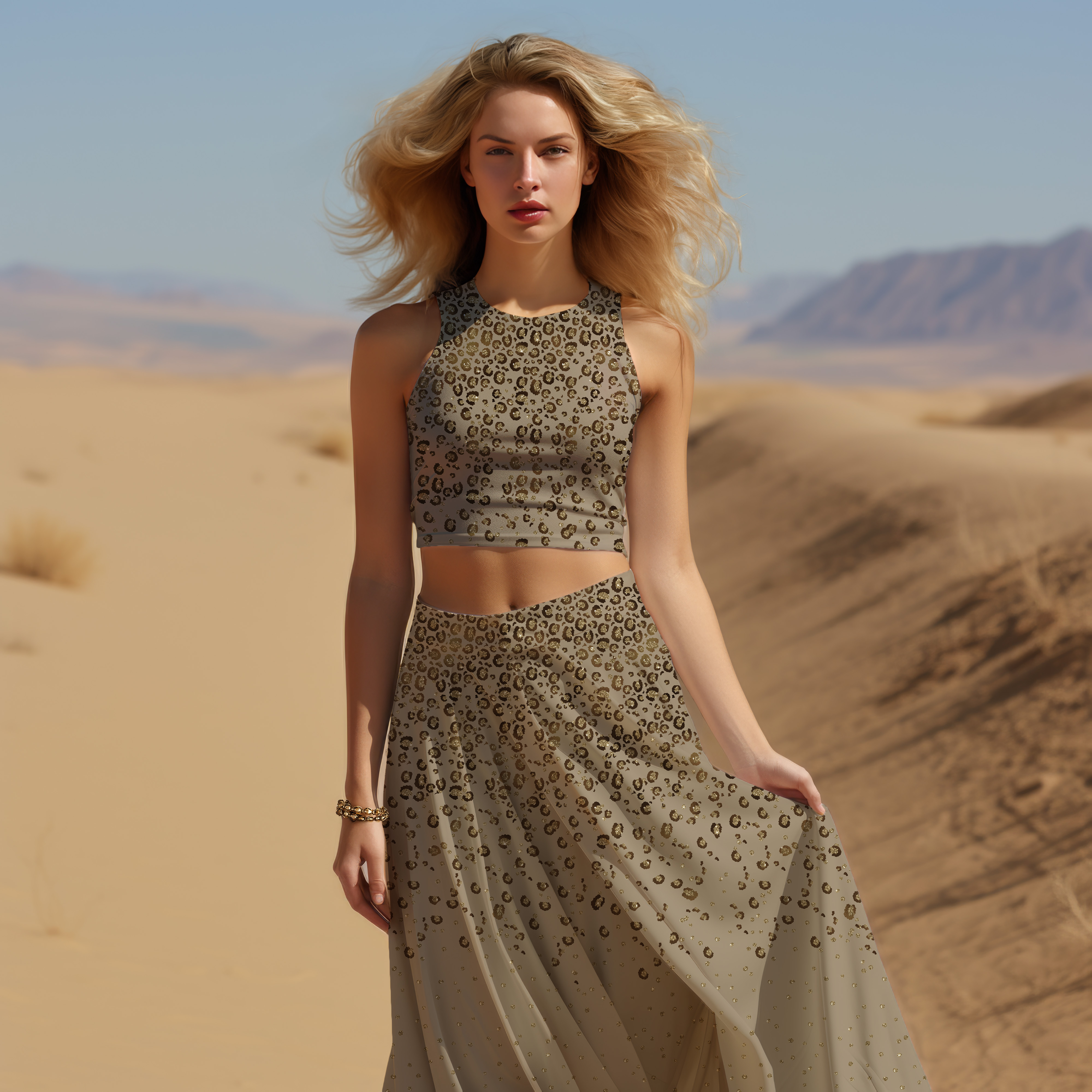 Entdecke pure Eleganz in Bewegung: Dieser exklusive, butterweiche Baumwolljersey vereint einen ausdrucksstarken Animal-Print mit einem raffinierten Fakeglitzer-Effekt, der luxuriösen Schimmer verleiht – ganz ohne aufgesetztes Glitzern. Das Ergebnis ist ein Look, der gleichermaßen wild wie edel wirkt und garantiert alle Blicke auf sich zieht.